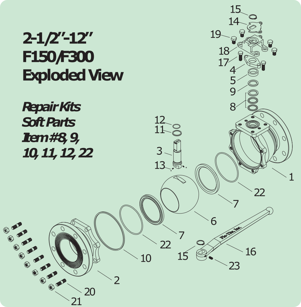 | FLO-TITE FULL-FLO FLANGED BALL VALVE 2.5-12" SIZE BILL OF MATERIALS | |||