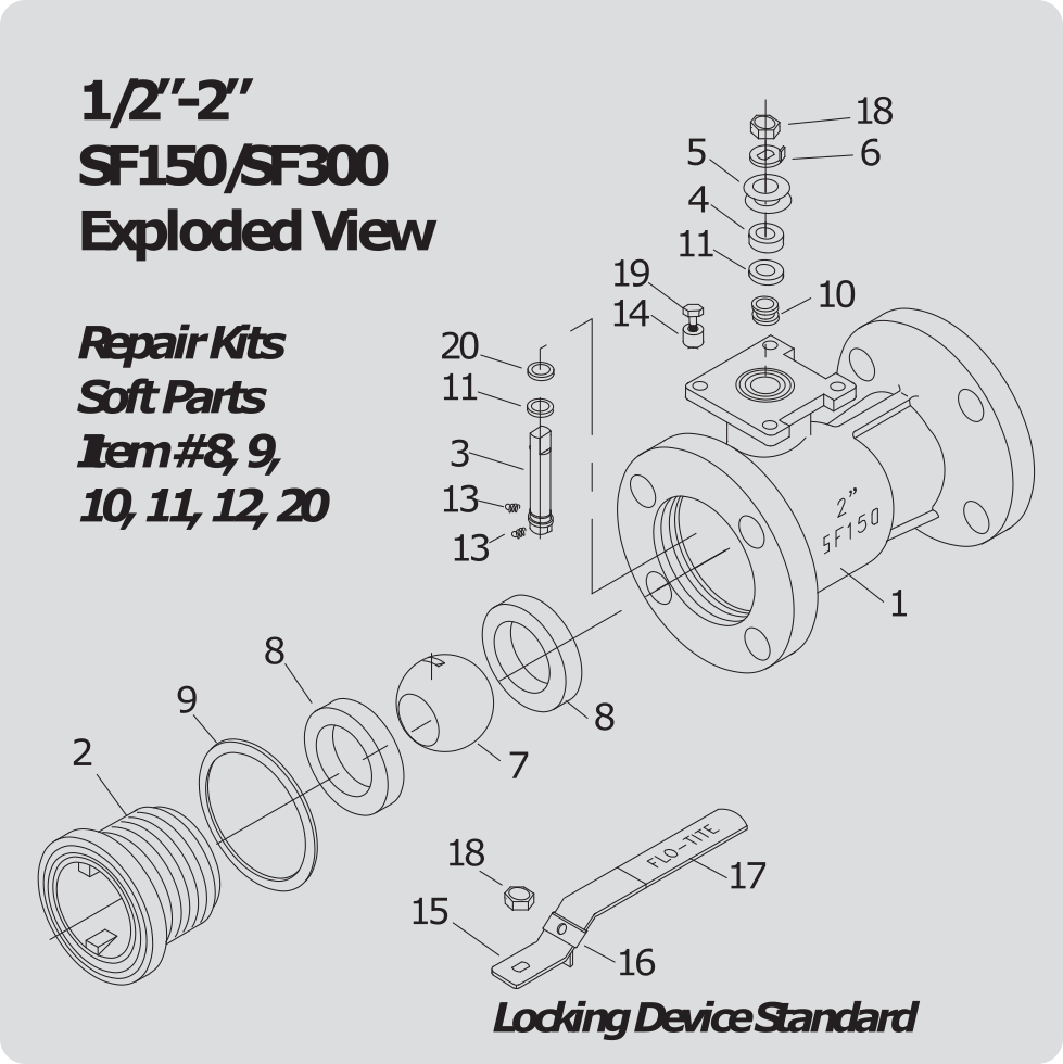 | FLO-TITE FULL-FLO FLANGED BALL VALVE 0.5-2" SIZE BILL OF MATERIALS | |||