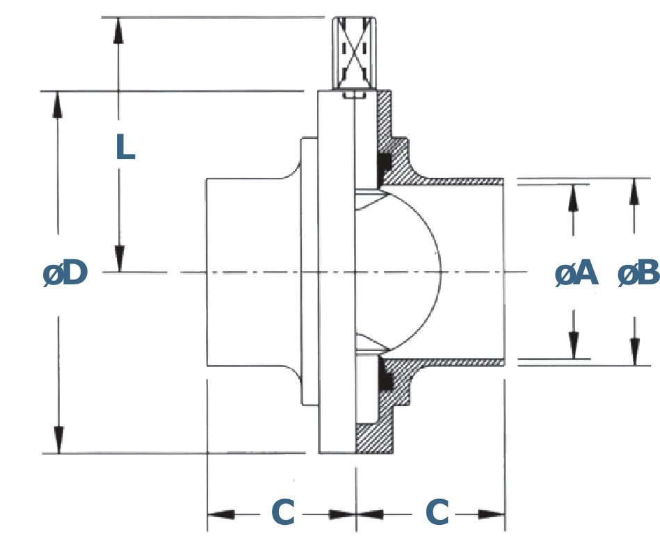 | SIZE (in) | A | B | C | D | L |