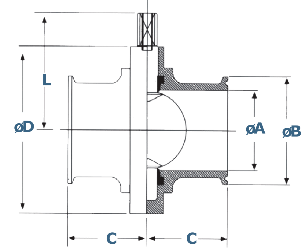 | W-FBY-316L SANITARY BUTTERFLY VALVE TRI-CLAMP STANDARD DIMENSIONS | |||||